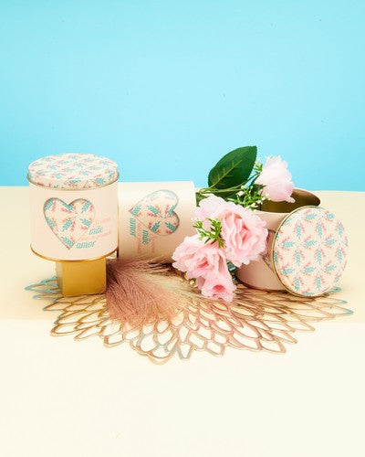 Transborde amor por onde for com a Lata Love! Ela foi desenvolvida com estampa exclusiva e é perfeita para ser presenteada ou para você guardar objetos.