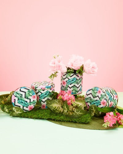 Qualquer presente fica mais completo com a Lata Tropical. Revestimento premium com estampa floral exclusiva. Além de presentar, é também uma ótima opção para você guardar seus pertences.