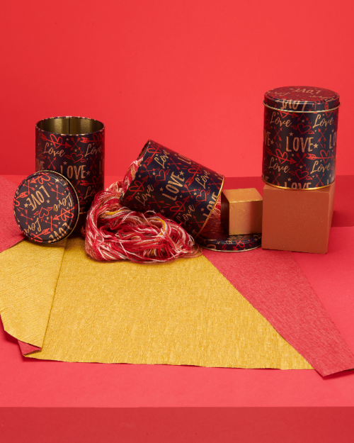 Transborde amor por onde for com a Lata Love! Ela foi desenvolvida com estampa exclusiva e é perfeita para ser presenteada ou para você guardar objetos.