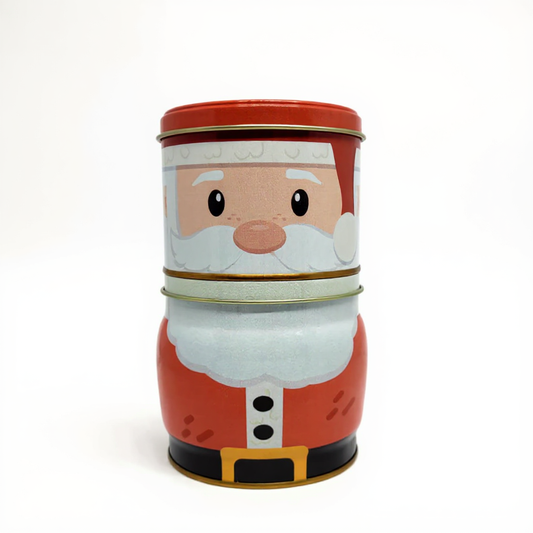 Transforme sua decoração de Natal com o Kit Papai Noel: duas latas que se encaixam perfeitamente quando empilhadas, formando o divertido e encantador Papai Noel. Perfeito para dar um toque especial à sua casa ou para presentear com muito estilo nesta época mágica!