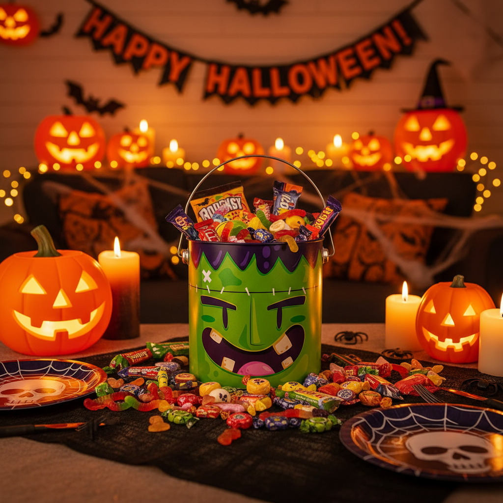 A Lata Frankestein é o acessório que faltava na sua festa de Halloween. Com design divertido e assustador, ela é perfeita para guardar doces e servir de balde durante o "Gostosuras ou travessuras". Não deixe de adicionar esse toque divertido e misterioso à sua comemoração! 👻