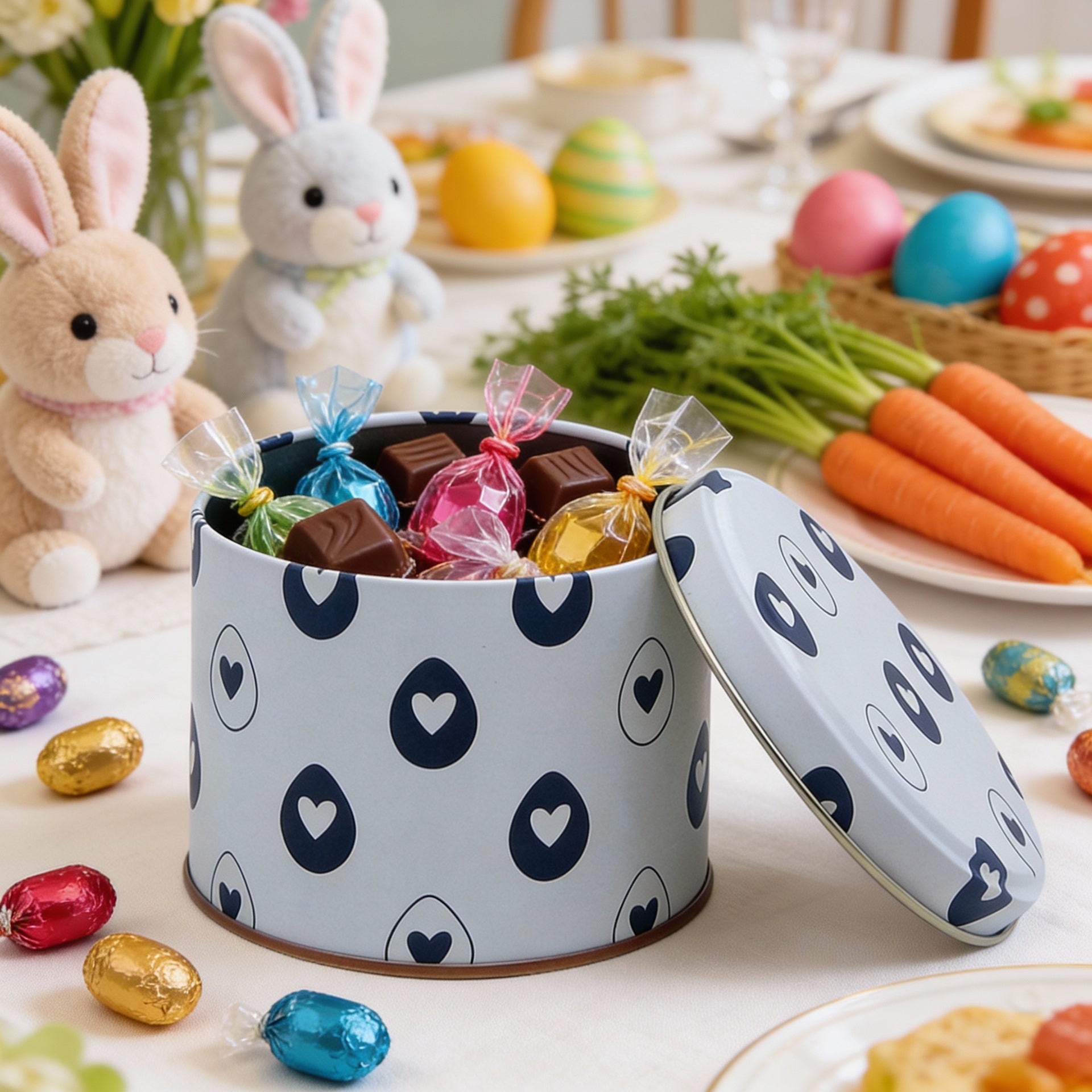 A lata Coração Preto e Branco é perfeita para presentear na Páscoa! Com design elegante, ela é ideal para guardar objetos queridos e especiais. Em preto e branco, é uma peça sofisticada e exclusiva, perfeita para encantar quem você ama.