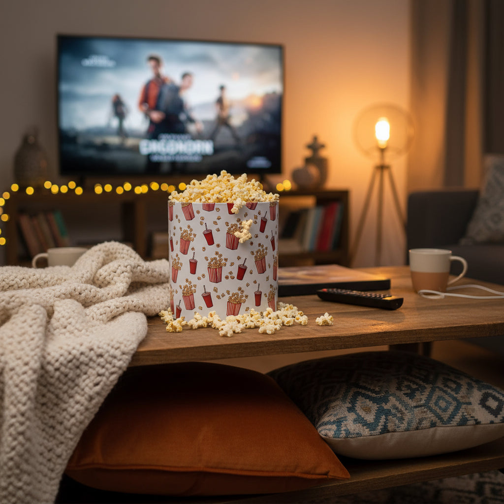 Para os amantes de filmes, a Lata Pipoca Vetor é o acessório ideal para uma sessão em casa com amigos ou família. É perfeita para armazenar suas pipocas enquanto você assiste seus filmes favoritos.